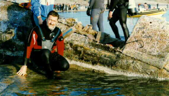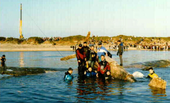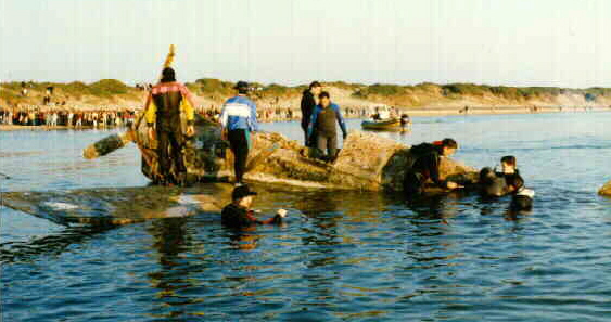 completely submerged, had waded to the beach and taken cover in the nearby